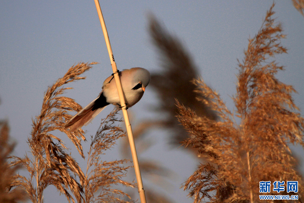 冬日里,在甘肃张掖国家湿地公园的芦苇丛中,“小萌鸟”文须雀跳跃、攀爬,呆萌可爱。新华网发(陈礼摄)