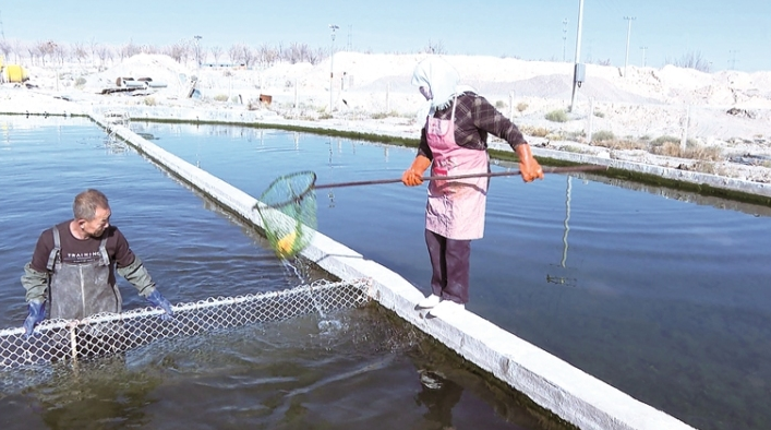 泉水潺潺,鱼跃塘中。走进景泰县中泉镇崇华村海潮林苑生态农牧专业合作社,群山环绕间的鱼塘波光粼粼,虹鳟鱼、金鳟鱼在清冽泉水中欢腾游弋,养殖户穿梭塘边,忙着投喂、巡查,一派丰收忙碌的喜人景象。