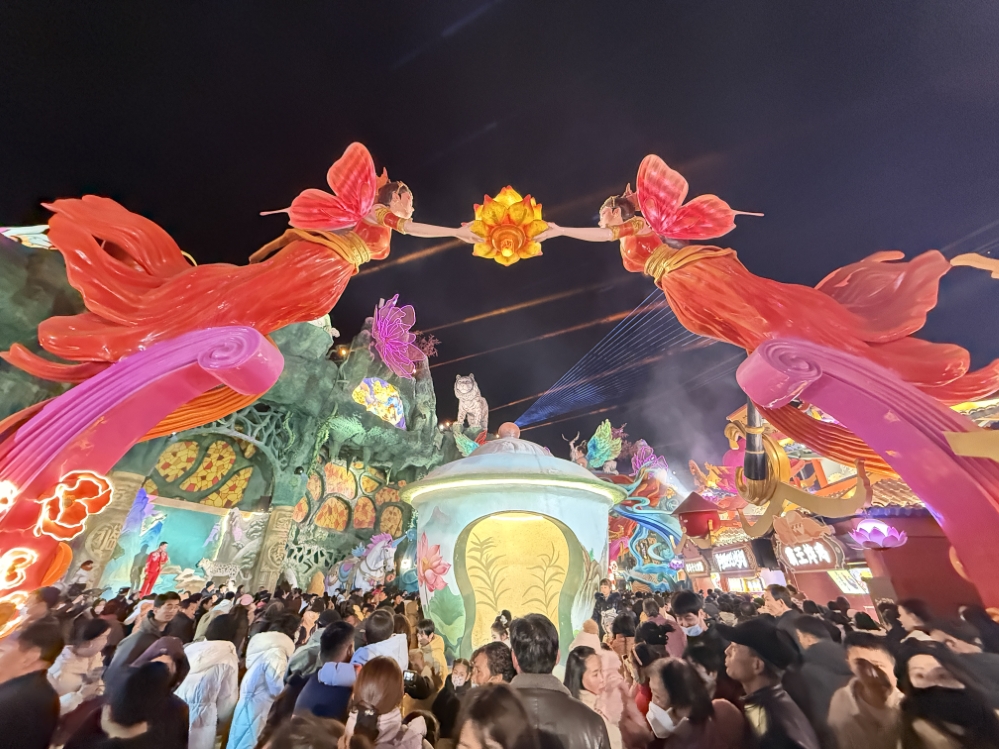 “花开临夏”不夜城吸引众多游客前来打卡。