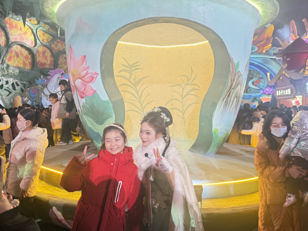 游客打卡“花开临夏”不夜城。