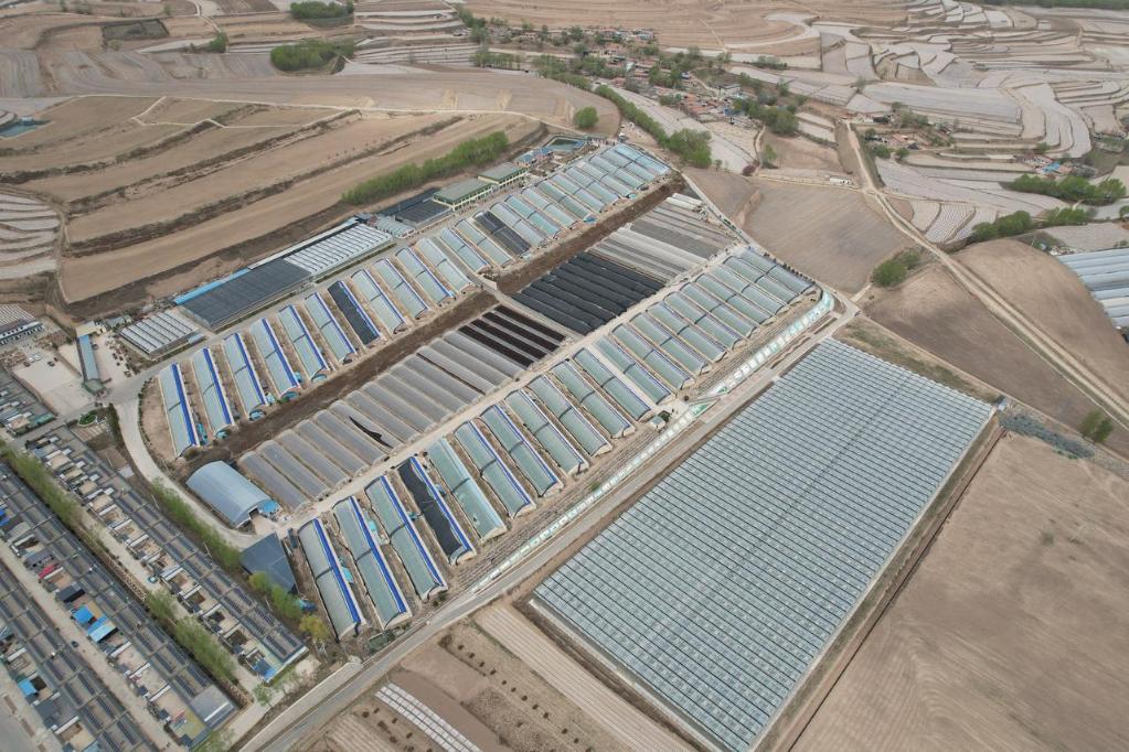 这是在甘肃省定西市安定区香泉镇种薯繁育基地拍摄的种薯繁育温室大棚(无人机照片)。新华社记者张睿 摄