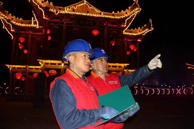 为筑牢供电保障防线,国网庆阳供电公司采用“线上监测+线下特巡”的立体化防控模式,通过配电自动化系统实时监控景区供电线路负荷变化与设备运行状态,精准预判用电高峰。线下组织工作人员对景区专用变压器、供电线路开展拉网式巡查,重点保障戏楼、游客集散中心、商户集中区域等关键节点供电稳定。