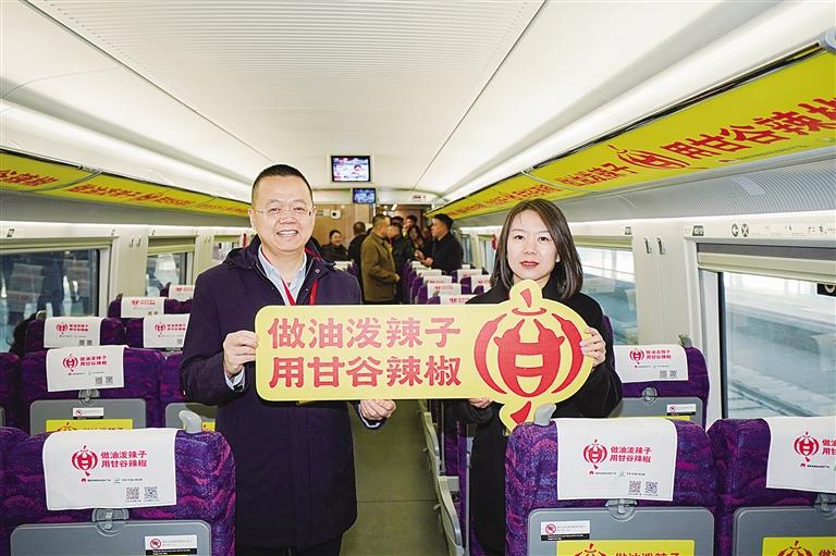 12月26日10时38分,涂装“甘谷辣椒”醒目品牌标识的G848次高铁列车从兰州西站缓缓驶出,沿徐兰高铁、京广高铁一路南下,直抵广州。这趟由中国铁路兰州局集团有限公司(以下简称“兰州铁路局”)打造的特色冠名列车,为具有400多年种植历史的甘谷辣椒走向全国市场打造了“移动宣传阵地”,也将陇原特色农产品与高铁运输、品牌传播深度融合,成为铁路服务乡村振兴的生动实践。