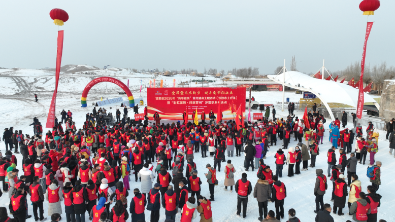 12月31日,“中国体育彩票”甘肃省2026年“新年登高”全民健身主题活动(张掖市主会场)暨“彩虹张掖·诗意甘州”冰雪季系列活动在张掖国家沙漠体育公园正式启动,来自全省各地的千余名户外运动爱好者齐聚于此,以徒步登高的方式极目远眺,在强身健体中迎接崭新一年。