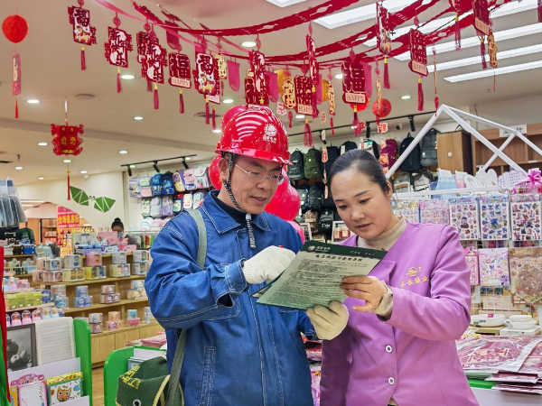 除了设备巡检,国家电网甘肃电力(薯都之光)连心桥共产党员服务队向商户和群众发放安全用电手册,耐心讲解节日期间用电注意事项、应急处置方法以及节约用电小技巧。从商铺的电器负荷配置,到居民的家庭用电安全,队员们细致解答每一个问题,将专业的电力知识转化为通俗易懂的语言,让安全用电理念深入人心。