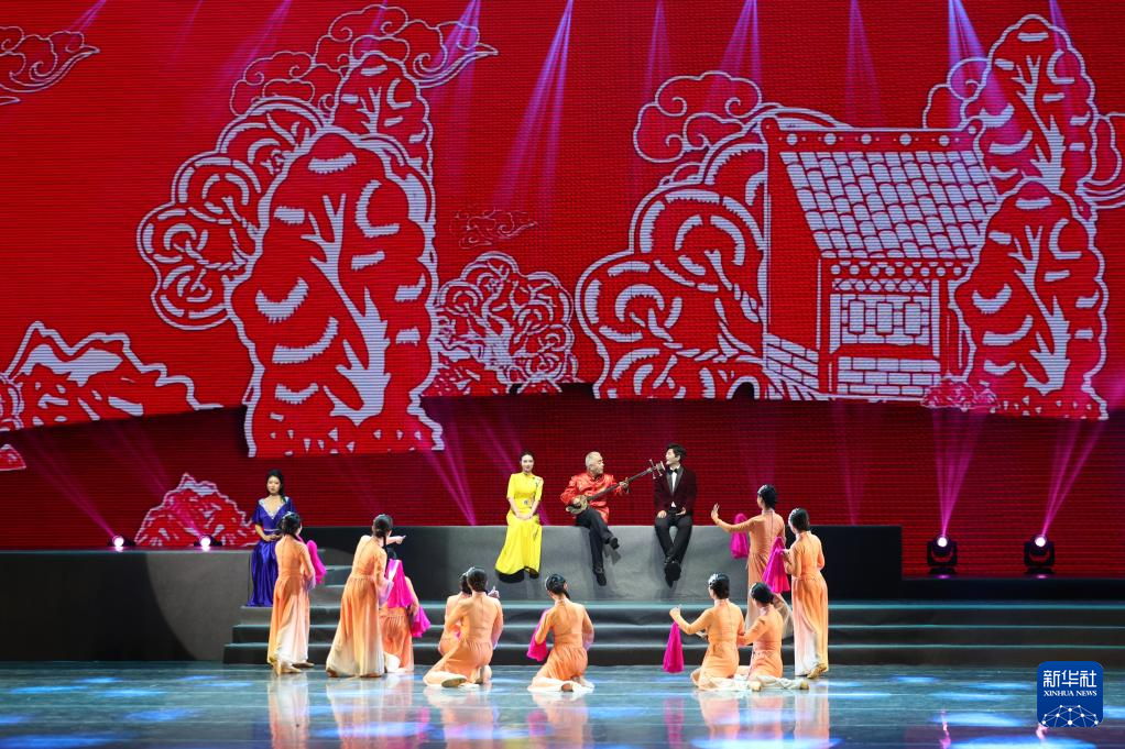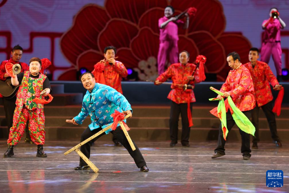 甘肃省金昌市永昌县文化馆的演员在甘肃省群众文艺展演展播活动首场演出中表演地方小曲(1月7日摄)。新华社记者 陈斌 摄