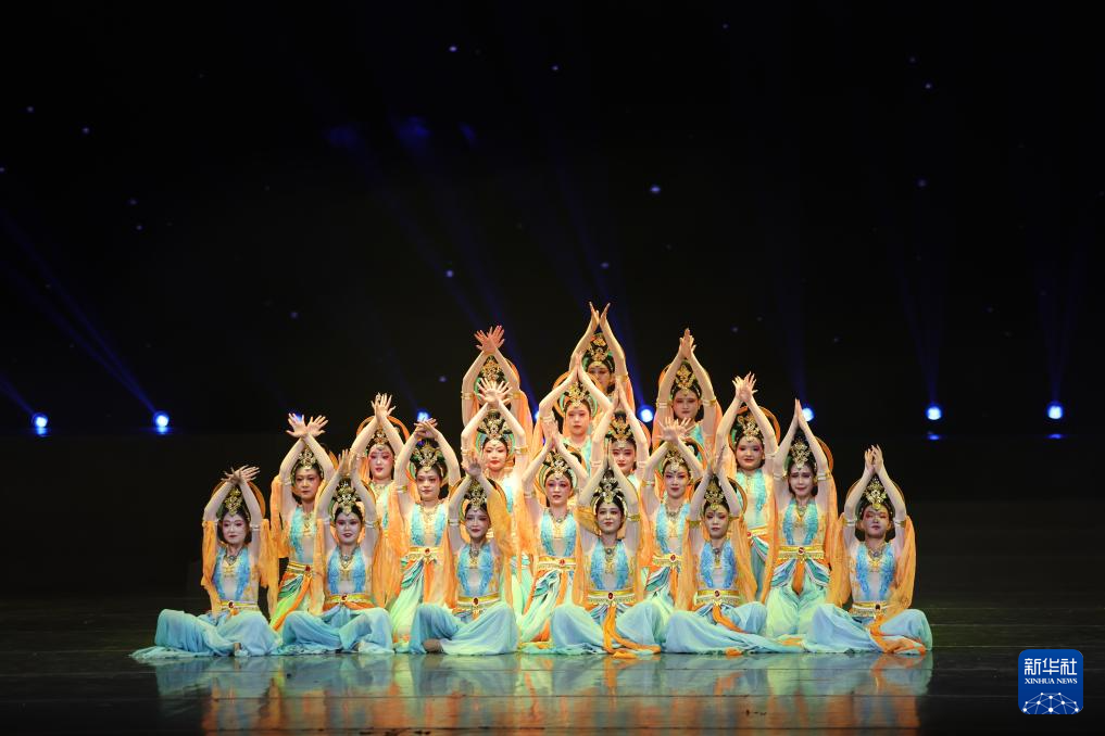 甘肃省酒泉市文化馆的演员在甘肃省群众文艺展演展播活动首场演出中表演敦煌舞(1月7日摄)。新华社记者 陈斌 摄