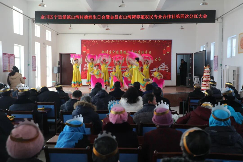 1月8日,“德润山湾暖夕阳 分红致富谱新篇”金川区宁远堡镇山湾村德润生日会暨金昌市山湾湾养殖农民专业合作社第四次分红大会在山湾村合作社举办,村民们欢聚一堂,为村内70岁以上老寿星送上福寿安康的真挚祝福,共同见证合作社发展的丰硕成果。