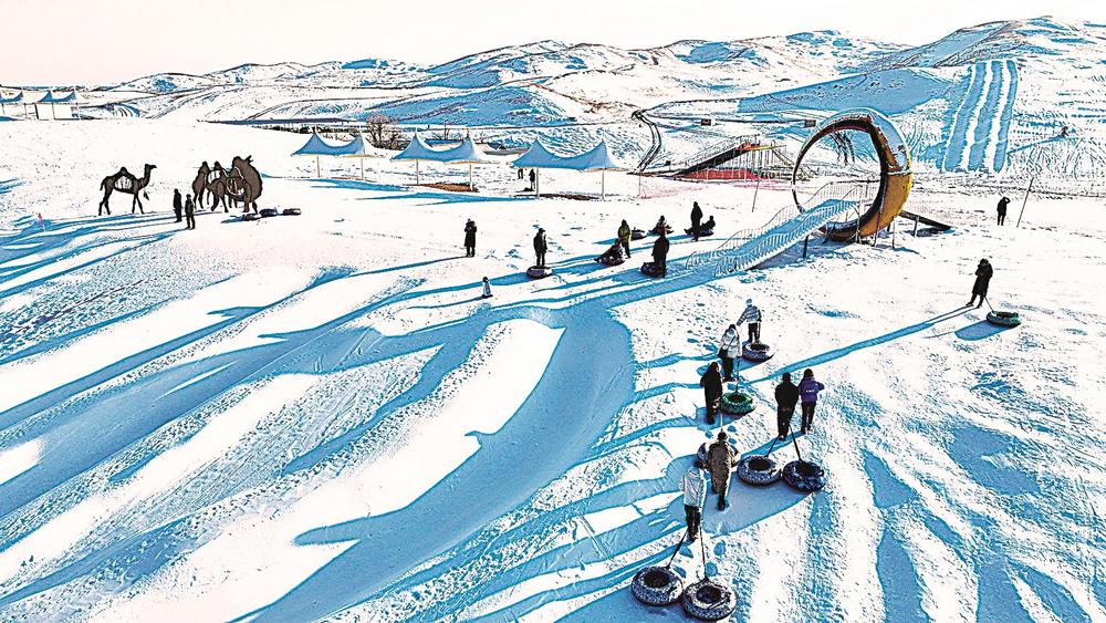 连日来,众多游客在张掖国家沙漠体育公园冰雪嘉年华体验冰雪乐趣,冰雪滑道、碰碰球、雪地摩托车、骆驼雪车等多样的冰雪活动为市民游客献上冬日文旅盛宴。(李自海 摄)
