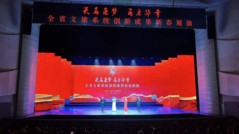 1月22日晚,由甘肃省文化和旅游厅主办,甘肃省歌剧院、兰州大剧院承办的“天马逐梦 再启华章”全省文旅系统创新成果新春展演在兰州音乐厅举行。