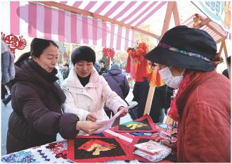 图为群众在年俗文化展示区体验。