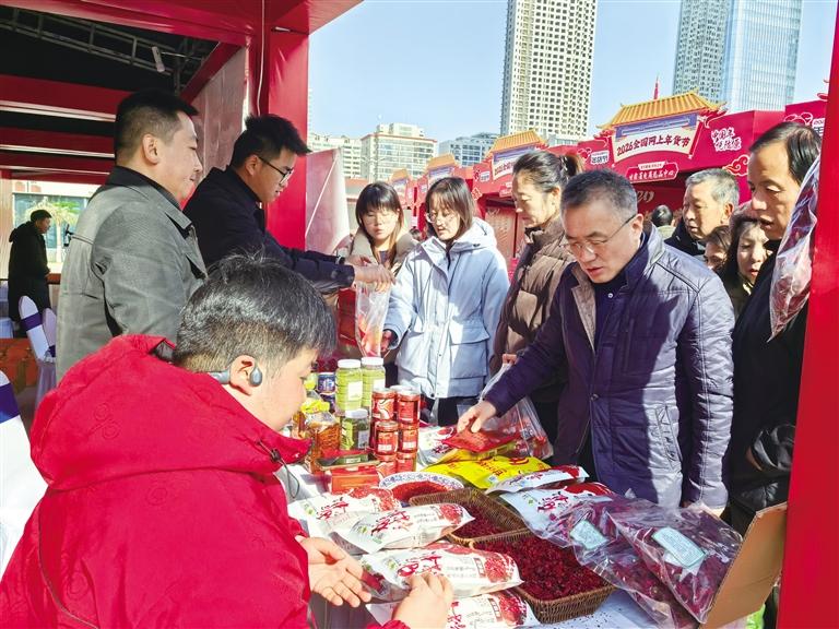 走进“2026全国网上年货节”的主市集兰州东方红广场,8000平方米的年货市集里人头攒动。红幔金饰的展位一字排开,马年专属的卡通小马与祥云纹样布满整个布景,红火的视觉设计将春节的氛围感拉满。130多个展位前挤满了采购年货的市民,厚实的冬装挡不住人们的热情。作为连续五年蝉联中国区域农业品牌影响力百强榜榜首的“甘味”品牌,带着陇原大地的醇厚滋味从田间地头走进城市市集,成为这个春节最亮眼的“流量担当”。