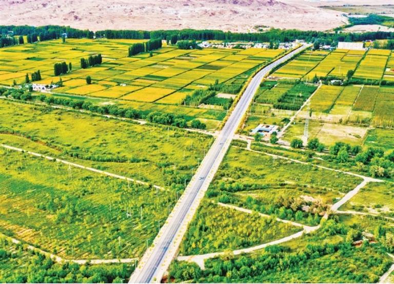 山脊上,灰白相间的雪豹穿行于岩石坡地;纵横交错的防护林,将绿洲和家园牢牢护在身后;一处处灌溉农田的智慧化改造设施,让每一滴水都能物尽其用……