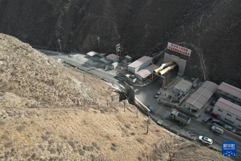 这是1月27日拍摄的兰合铁路西固隧道4号斜井口(无人机照片)。新华社记者 陈斌 摄