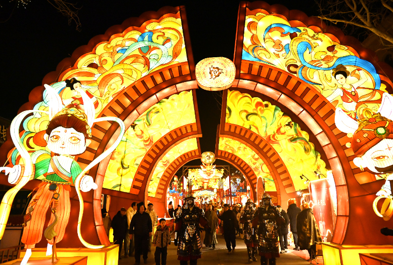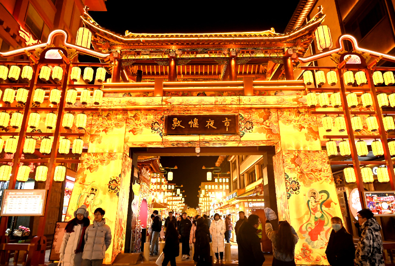 佳节将至,游客走进丝路敦煌,观灯会、赏民俗、购文创、品美食,喜迎新春。(张晓亮 摄)