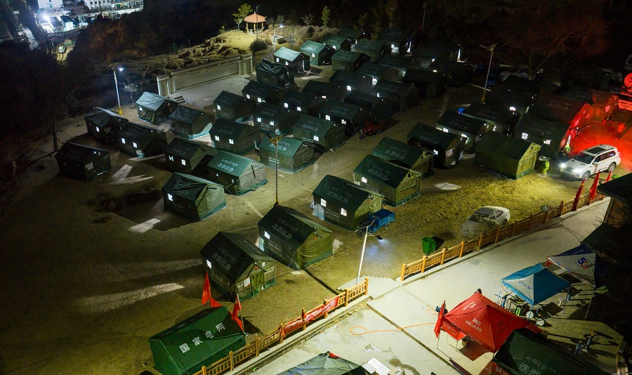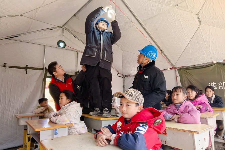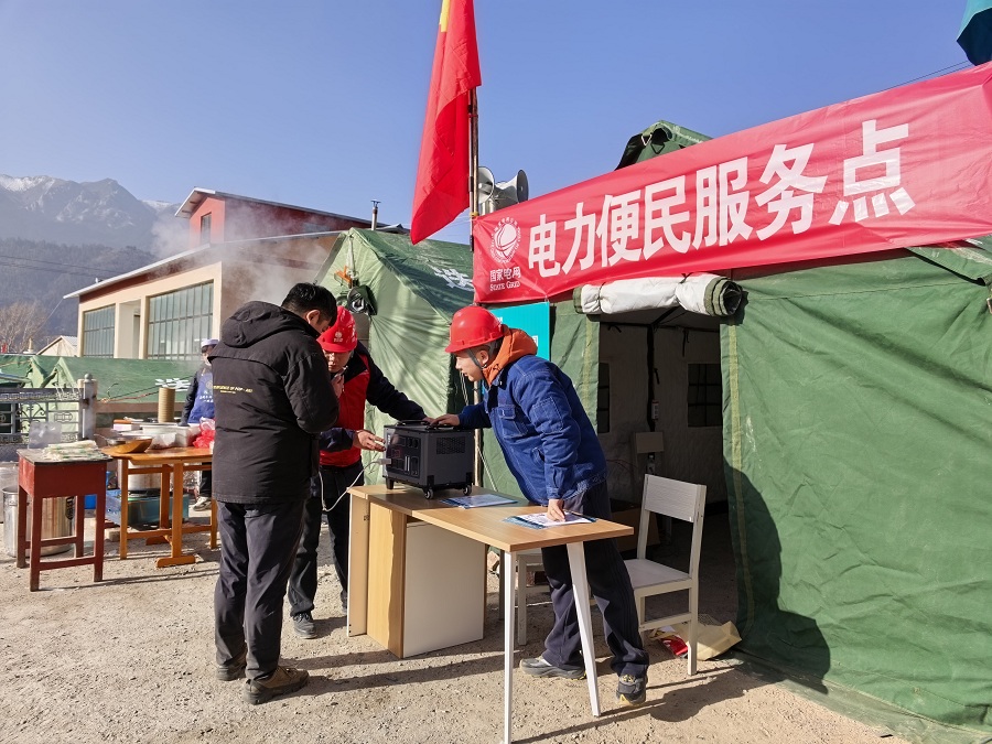 1月27日,国网甘肃电力在安置点迅速设置电力便民服务点。工作人员坚守一线,全力保障抗震救灾和群众安置用电需求,让服务更有温度。 (杨凯 摄)