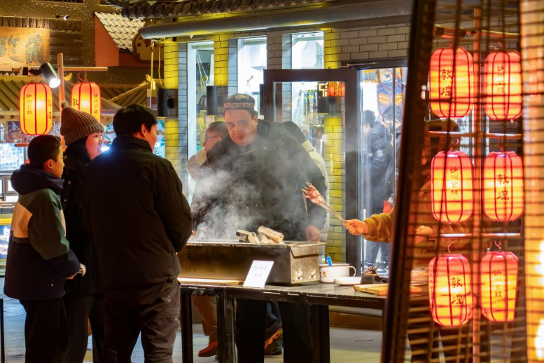 作为丝路重镇,敦煌孕育了兼容并蓄的饮食文化,驴肉黄面、胡羊焖饼、敦煌烧烤等特色美食承载着地域风情与历史记忆。其中,敦煌烧烤更成为了当地夜间经济的重要名片。