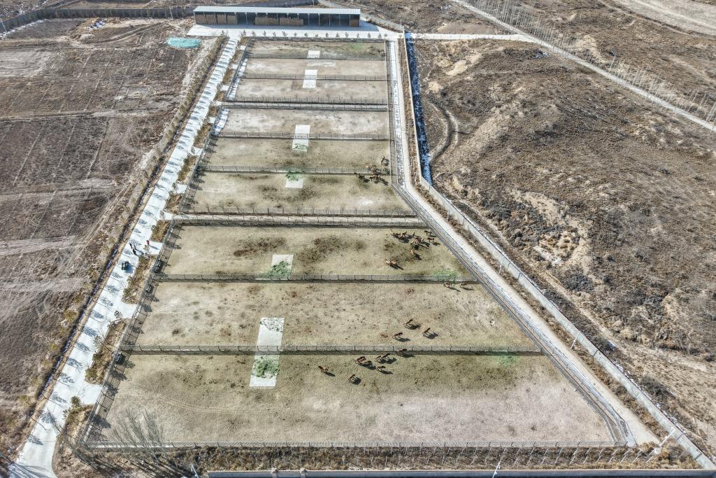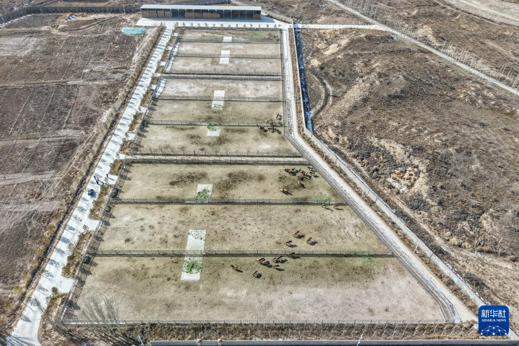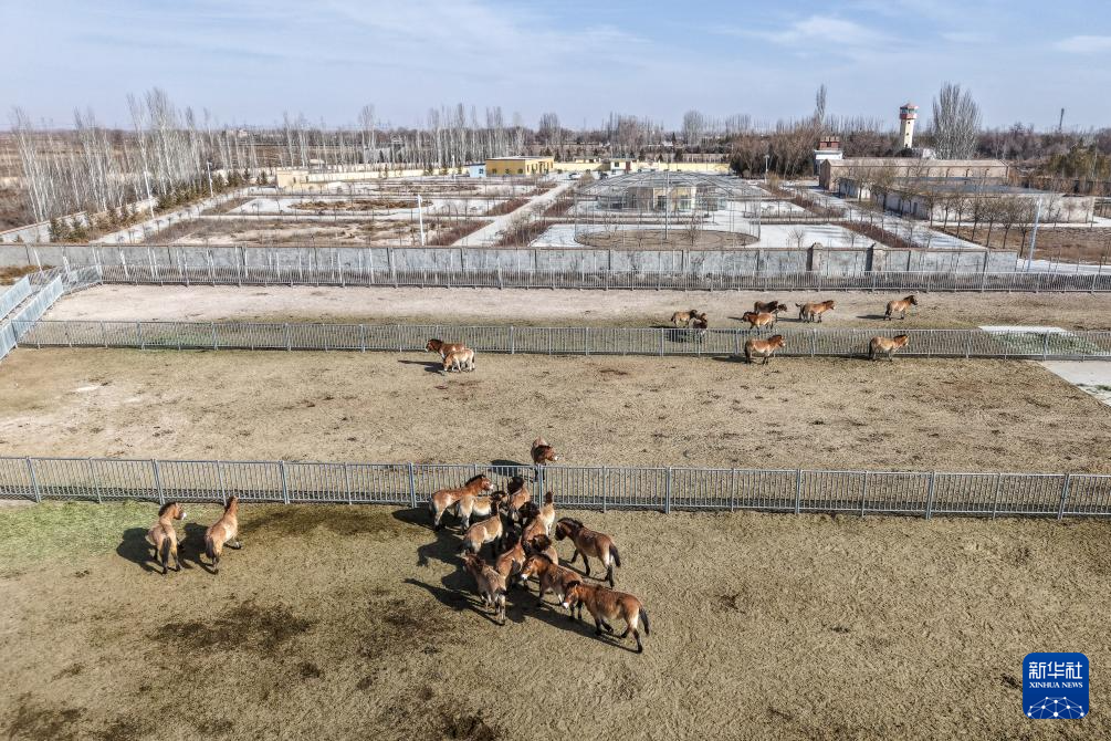 这是在甘肃省武威市拍摄的甘肃濒危动物保护中心普氏野马饲养繁育基地(无人机照片,2月3日摄)。新华社记者 郎兵兵 摄