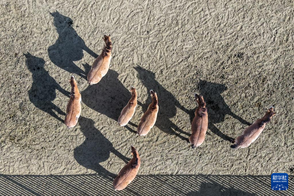 这是在甘肃濒危动物保护中心普氏野马饲养繁育基地拍摄的普氏野马(无人机照片,2月3日摄)。新华社记者 郎兵兵 摄