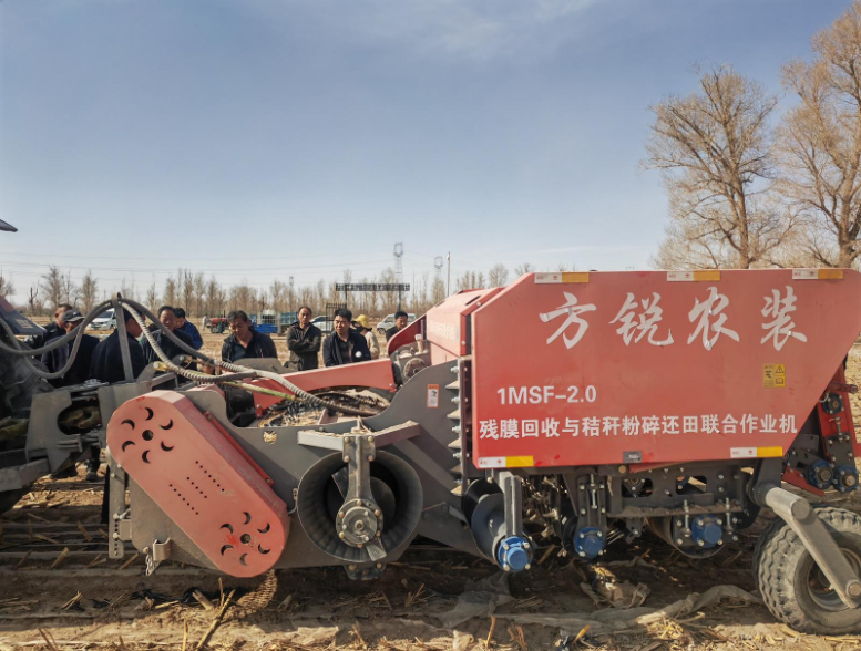 “这款残膜回收与秸秆粉碎联合作业机是我们公司历经4年多时间自主研发的重点机型,目前已在新疆地区大面积推广应用,市场反馈良好。”研发该机具的农业机械公司技术员李兵在现场向农户介绍,“今天我们在金川区双湾镇古城村的一块玉米地上进行实地作业实验,从现场效果来看,残膜回收率达到了预期标准,拾净率高,作业流畅稳定,整体表现相当不错。”