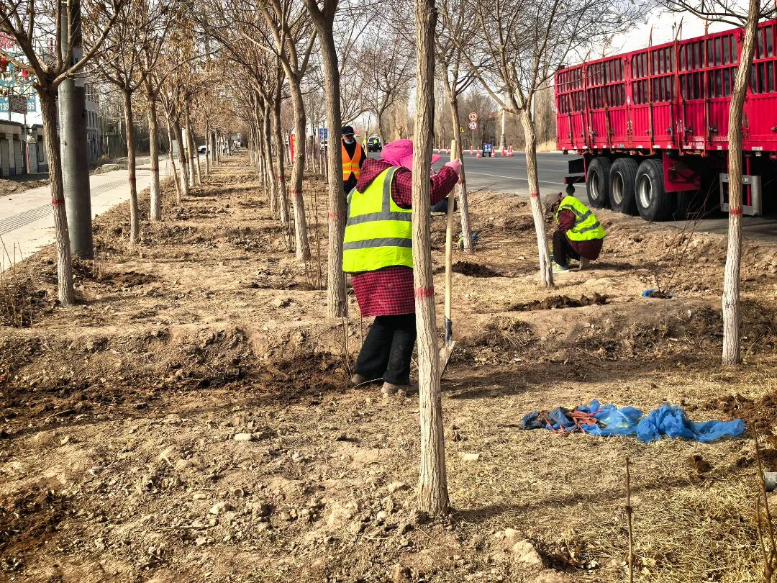 抢抓植树黄金期,邀请市林技中心全程跟踪指导,从苗木选择、整地挖坑、扶苗填土到浇水养护,严格遵循栽植规范,确保栽一棵、活一棵、成一片。截至目前,已对西出口沿线3300余株树木完成灌水1轮次、修枝整形1轮次,正在按照设计方案补植连翘、丁香、欧洲玫瑰等花灌木,目前已补植1200余株,预计清明节前全部栽植完成。