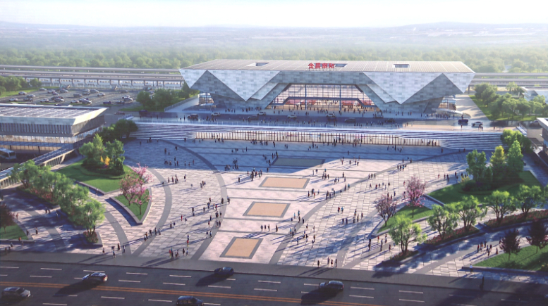 金昌南站站房及站前广场鸟瞰效果图