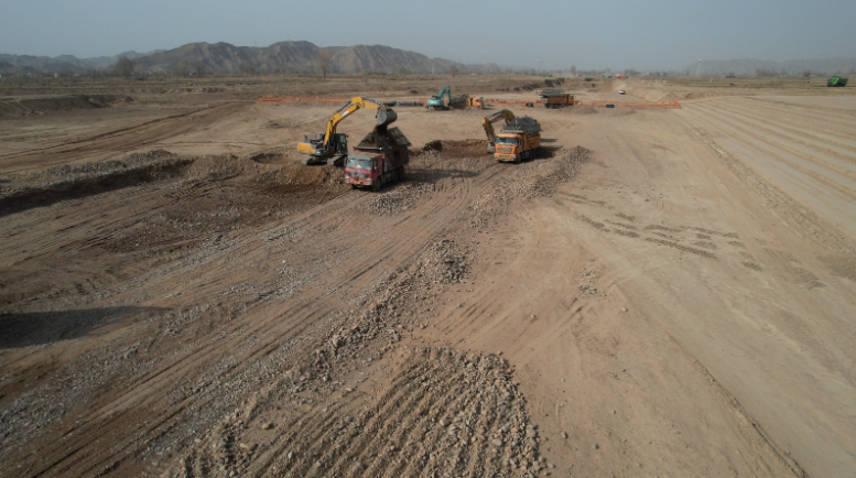 金昌南站站房基地作业施工现场