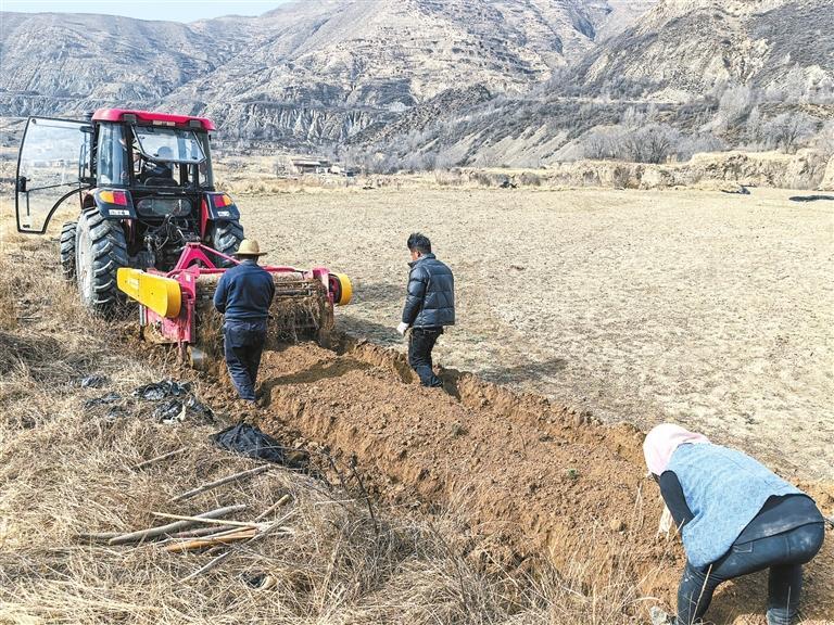维新镇机械化收获药材种苗。本版图片除署名外均由新甘肃·甘肃日报记者王朝霞摄