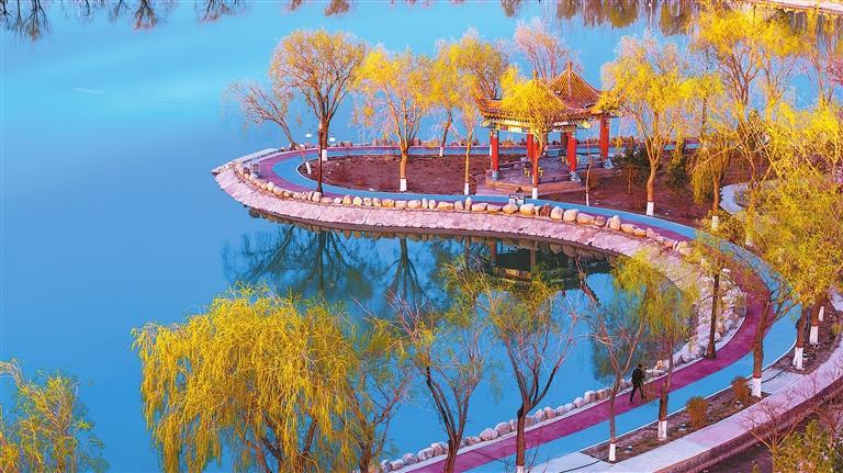 近日,阿尔金山脚下的阿克塞县城春意渐浓,呈现出杏花争艳杨柳绿的美景。 新甘肃·甘肃日报通讯员 高宏善