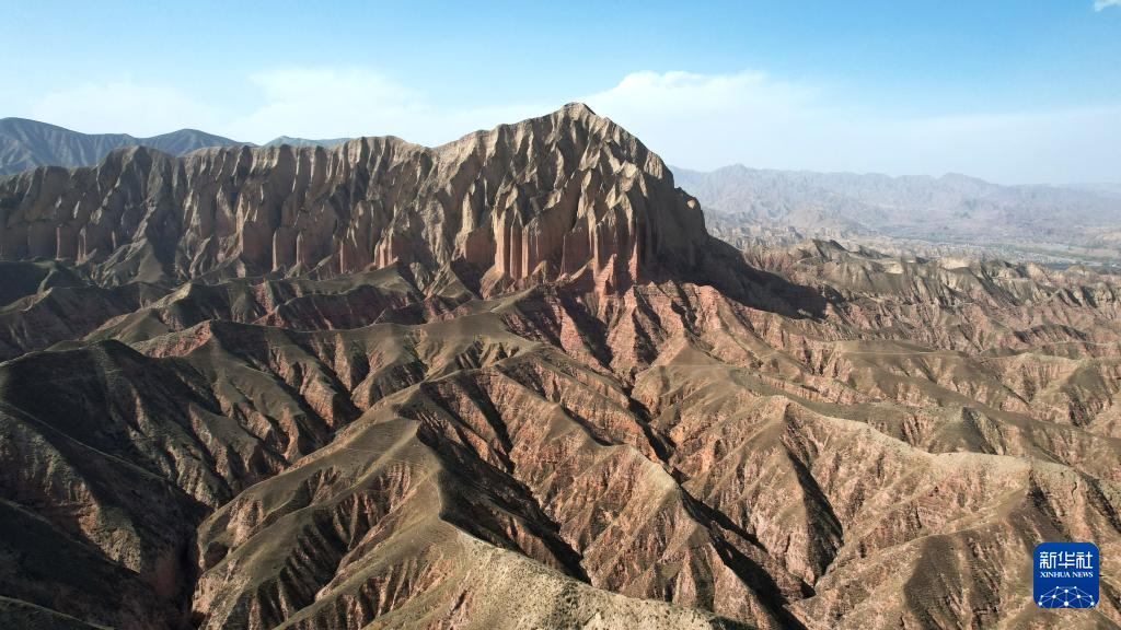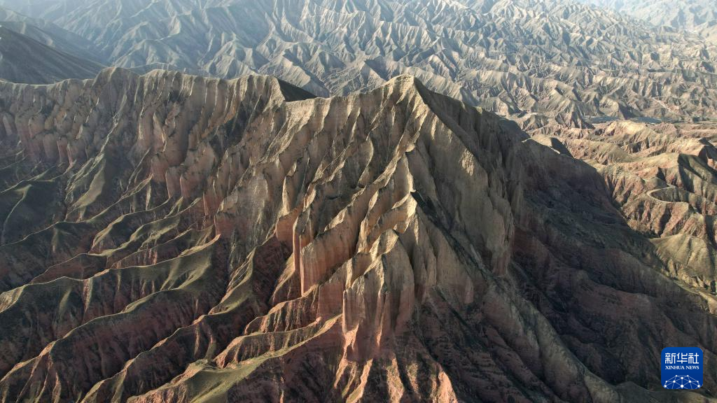 这是4月4日拍摄的石拉泉大峡谷丹霞地貌(无人机照片)。新华社记者 陈斌 摄