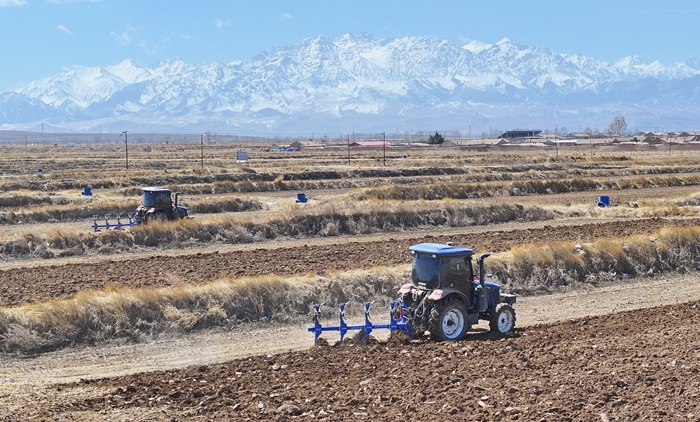 近日,在甘肃省张掖市民乐县民联镇黄朱庄村油菜制种基地,农户们正在深耕土地、精准施肥,为油菜制种播种做好准备。