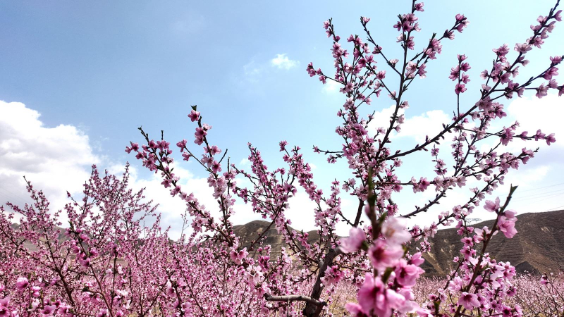 春风拂遍永靖大地,满城春意渐浓,永靖县城北新村的850亩桃园,如期迎来盛花期。
