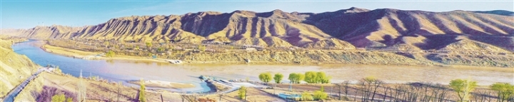 春风和煦,繁花竞放。黄河岸边的景泰县五佛乡碱湾、金坪村满目春色,在夕阳映照下,田园村落色彩斑斓,风光如画。