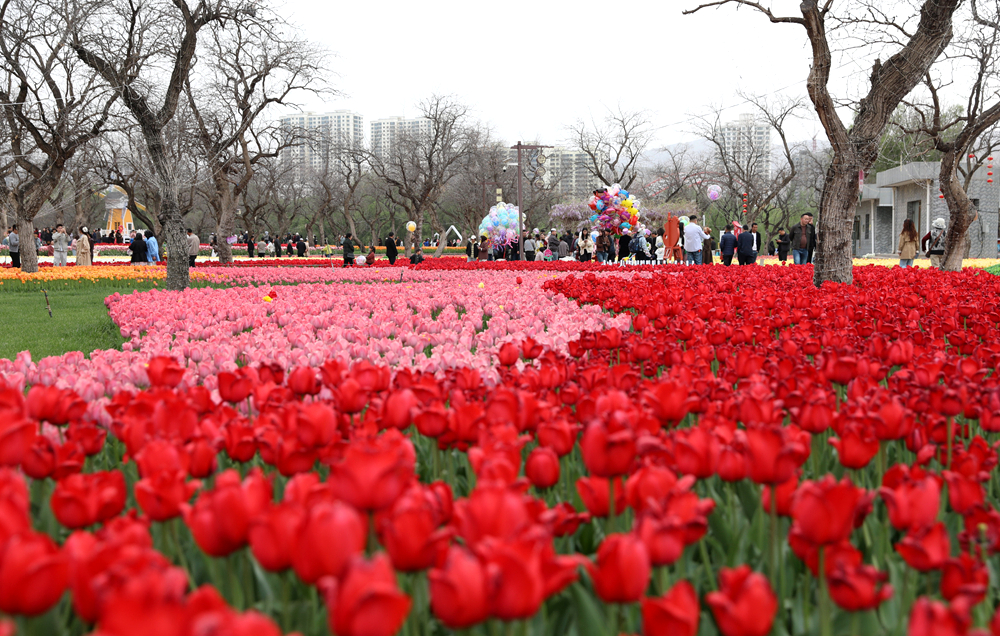黄河之滨郁金香竞相绽放。新华网发(吕亚龙摄)
