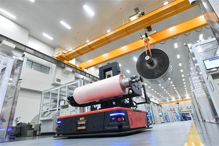 AGV智能物流车穿梭在海亮生箔车间
