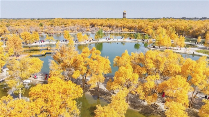 金塔沙漠胡杨林层林尽染