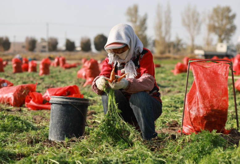 金塔:深秋田地挖“红宝” 麦后复种喜丰收