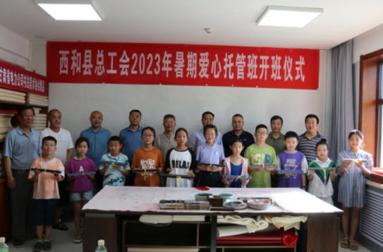 7月21日,西和县总工会2023年暑期爱心托管班暨国网西和县供电公司“红领巾”职工子女暑期书法绘画班在西和公司职工书画活动室开班。西和县总工会主席朱小宝宣布绘画班开班,共青团西和县委,国网西和县供电公司党委、工会负责人,书美协会顾问、会员以及参加绘画班的职工子女、家长参加了开班仪式。